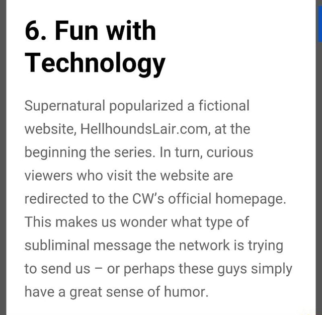 The website was created by the shows producers. It premiered on april 24th, 2008. Choose not to use archive warnings; Streaming live out of mom's basement. harmony and sam both laughed at that. Sam and dean investigate a house haunted by the ghost of mordecai, a man who killed his six daughters during the 1930s. Hell house is the 17th episode of season 1. Apparently it attacks girls, strings them up in the rafters and then the bodies mysteriously disappear. The url to the website now redirects to the official cw website. From the epic stories of heaven, hell and purgatory, to the personal details of sam's hair and castiel's trench coat.if you want to brush up on your enochian or find a binding spell, check out what music played in an episode or what the influence of star wars has been.
